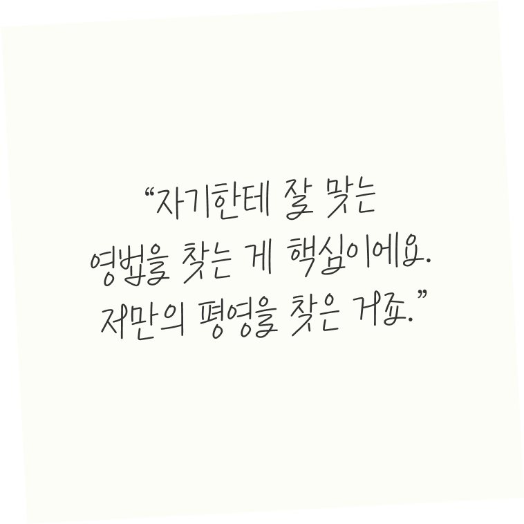 근데 이제는 괜찮아요. 오히려 그 친구들 응원하죠. 그냥 이 길에서 해법을 또 찾으려고 했어요. 응원해 주는 걸로.